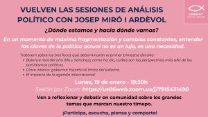 25 de febrero – Sesión política con Josep Miró: «10 temas clave para entender el momento actual» 18/02/2026 Llegir-ne més »