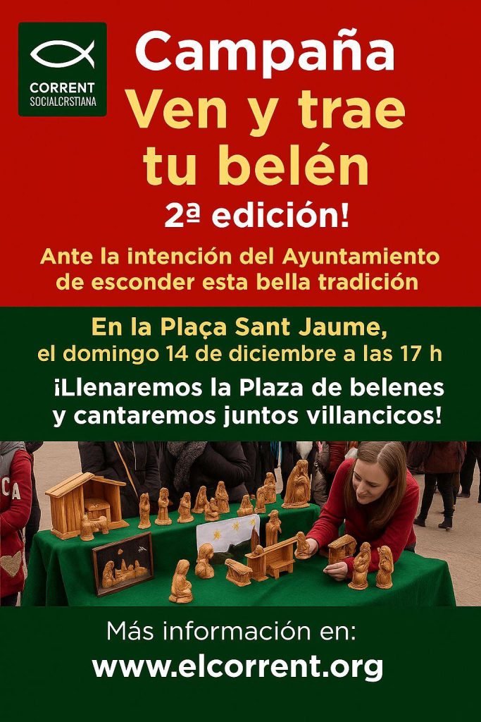 Ven y haz sentir tu disconformidad con Collboni de una manera navideña. Ven el día 14 de diciembre a las 17 h a la plaza de Sant Jaume y trae tu belén, tu Nacimiento, tu figurita, y haremos como ciudadanos lo que Collboni quiere prohibir: el belén en el espacio público donde la comunidad se hace presente.